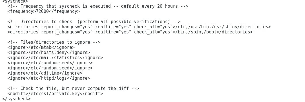 <directories report_changes="yes" realtime="yes" check_all="yes">/etc,/usr/bin,