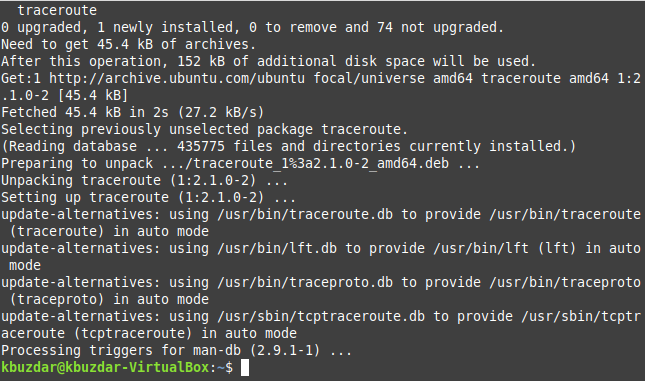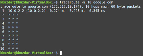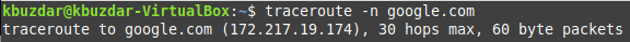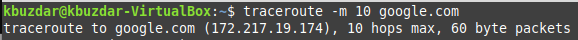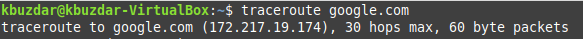 Now when the Traceroute utility is successfully installed, you can perform the following examples by making use of this utility in Linux Mint 20.