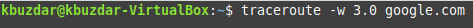 The default timeout value for which Traceroute waits to receive responses from hops is 5 seconds. You can increase or decrease this limit in the manner shown below: