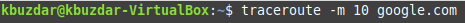 Now, you will notice that this command will show the maximum hop count as 10, as shown in the image below: