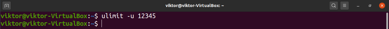 To change the number of available processes to 12345, run the following command. It’ll impose a temporary hard limit on the user.