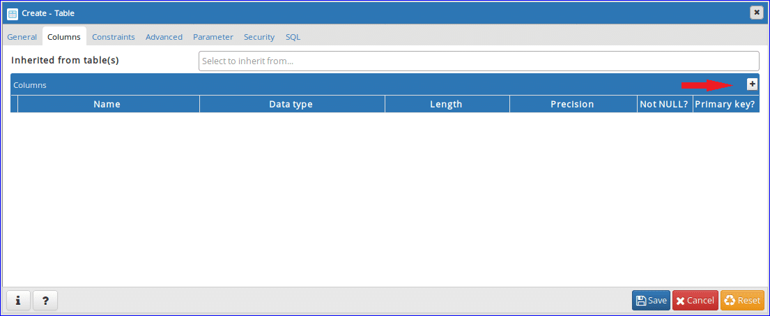 Select ‘Columns’ tab and click on ‘+’ button to create a new field for the table.