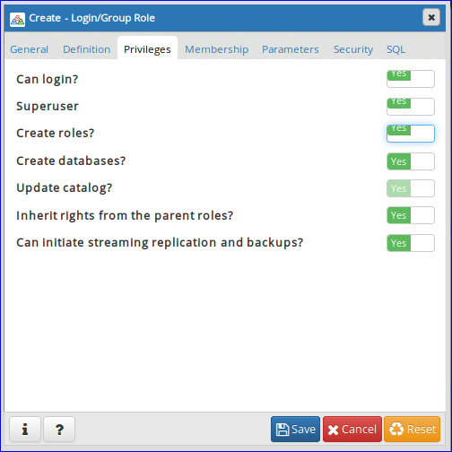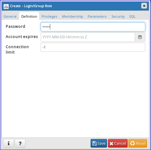 Right click on Login/Group Roles, select Create and click on Login/Group Roles… for creating new user.