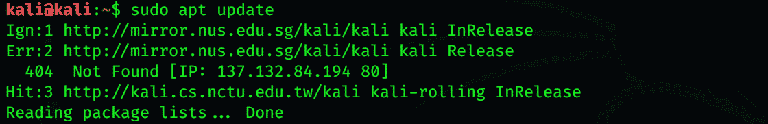 The addition of Kali Linux repositories in the /etc/apt/sources.the list file is important. If you forgot to add them, add the repositories given below in the sources. List files.