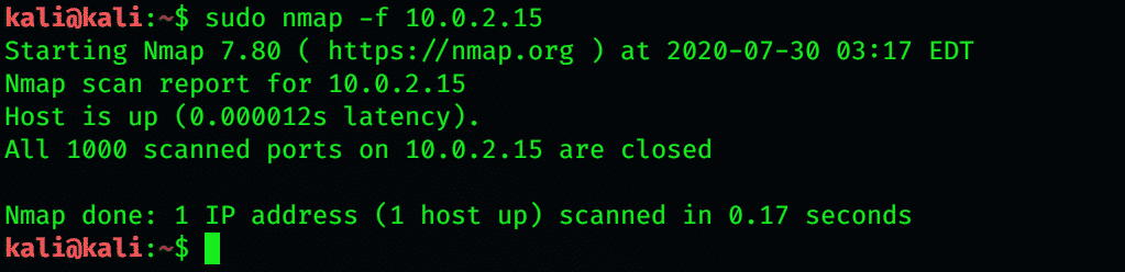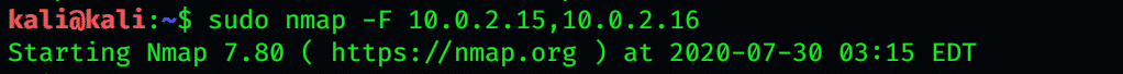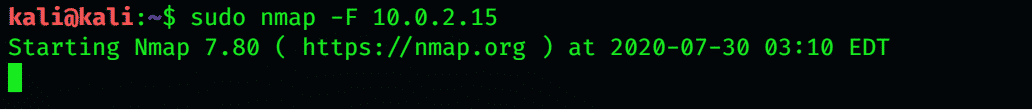 Nmap scans thousands of used ports on the machine you are targeting. This process takes a lot of time. If you wish to scan only the most common scans to reduce time consumption, use the -F flag. By using this flag, Nmap only scans the 100 most common ports.