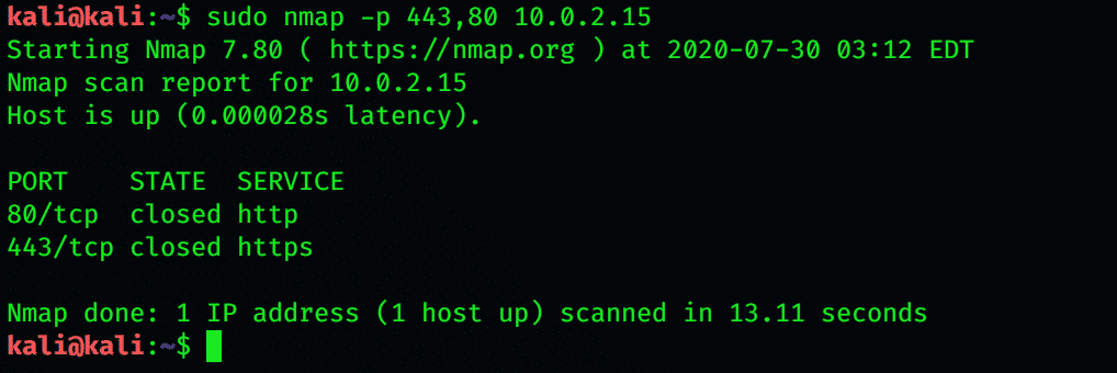To scan the selected ports using Nmap, use -p. Now, Nmap will only scan the specified ports.