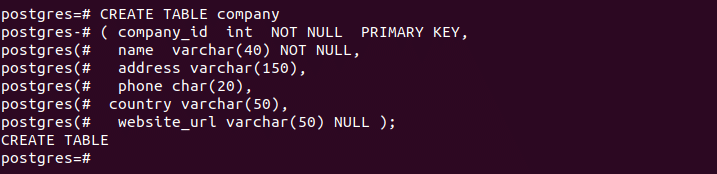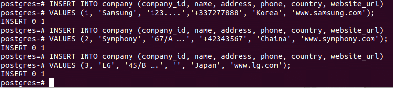 INSERT INTO company (company_id, name, address, phone, country)