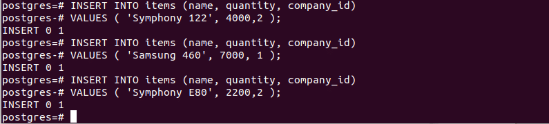 Insert into Company table: