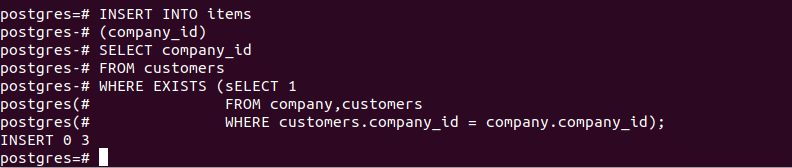 According to the following insert query, the data will be inserted in items table when company_id of both company and customers tables are equal.