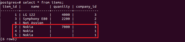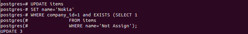 Here, the subquery will return true for three times and company_id is 1 for three records. Three records will be updated after executing the update query.