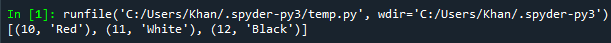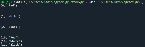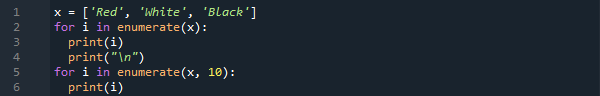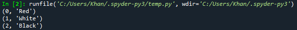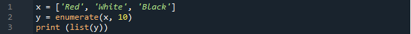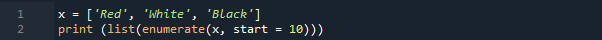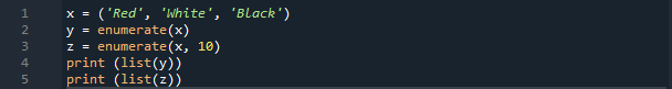 Taking the same example for tuple, we have printed out all the enumerated tuples while converting them to a list again. We have both with and without startIndex statements here.