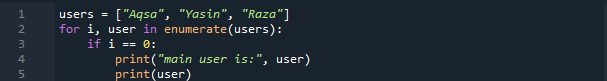 Perform a simple check on index number 0 of a list having users in it as shown. If the index number is 0, then it will print the user located at this index.