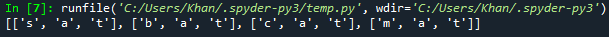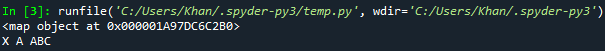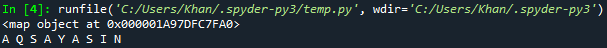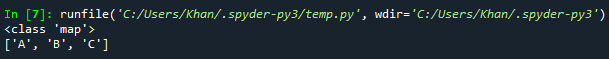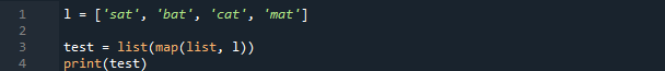 Now let’s have a list of some strings. We firstly convert each element in it to a list then mapped it. After that, the mapped result will be ordered in list form to be saved in the variable ‘test’ to be printed out.