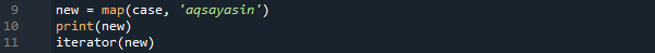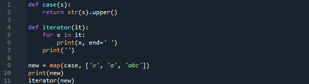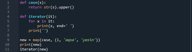 We have a tuple passed into the function ‘case’ to be converted into the upper case while the ‘iterator’ method displays white-space iterator items.