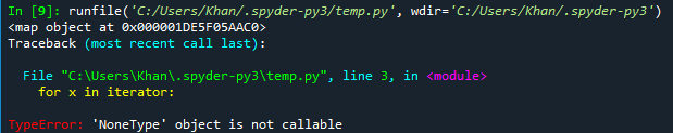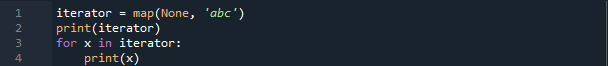 Let’s have a look at what occurs when we pass the method as None to the iterator variable.