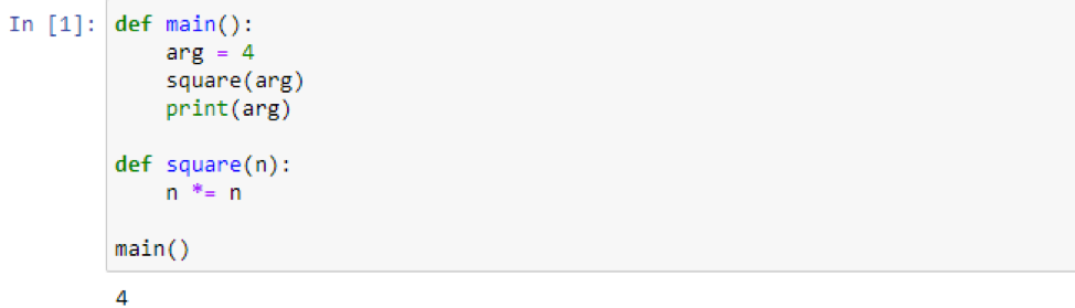 As you assign the method a reference to a defined variable, the variable it corresponds to would be explicitly influenced by all operations on this Reference. Now let us consider an example of how, in practice, this works. In this example, we have defined a variable ‘arg’ having a value of 4. Throughout this scenario, the variable ‘arg’ wasn’t modified in its place. Python does seem to handle your provided argument instead of a reference to a present variable as a self-contained value.