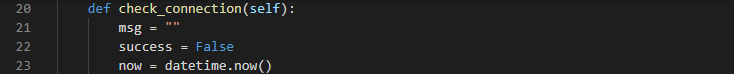 So to test the server connection, we have created another method in Server() class named check_connection(). In this method, we have to define three variables as: