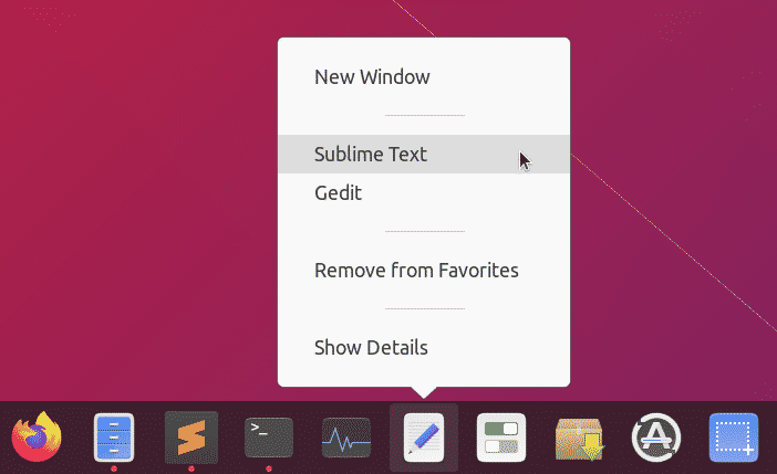The example below shows a custom application launcher called “Text Editors” having two actions in a quicklist:
