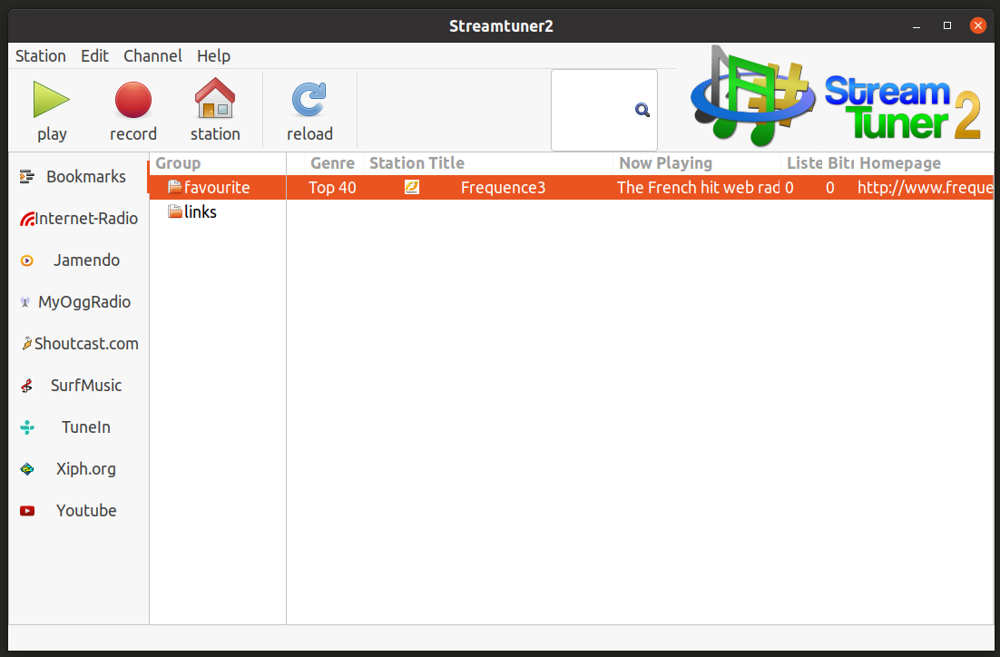 Streamtuner2 is an open source and cross-platform music stream explorer that allows you to browse varios radio station streams available across the Web. Streamtuner2 is not a radio player in itself, it just shows browsable radio streams in a multi-pane user interface. Any stream you want to play can be opened in any external media player of your choice by clicking on the “play” button visible in the top toolbar. Streamtuner2 also allows you to bookmark and record streams of your favorite radio channels.