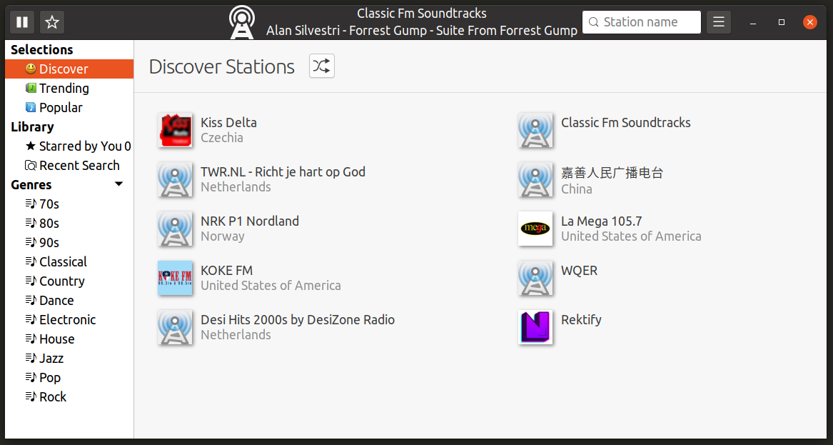 Tuner is an open source radio streaming application for Linux. Its feature set is mostly identical to the Shortwave app mentioned above. Similar to Shortwave, it also uses an API from radio-browser to stream music from thousands of radio channels. Tuner also features a sidebar that allows you to quickly browse and manage radio stations.