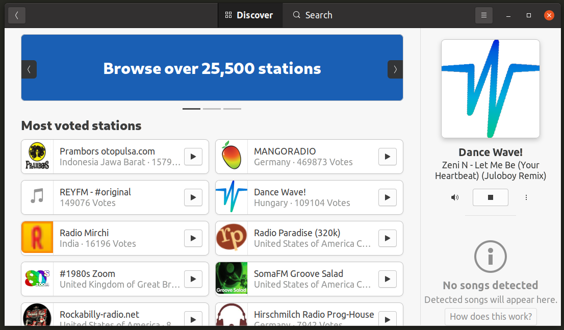 Shortwave is an open source radio streaming application for Linux featuring a selection of over 25000 Web based radio stations. You can mix and match stations to create your own library and cast the music to other devices connected to the same network. Shortwave automatically detects titles of music streams and displays them in the sidebar. Shortwave is successor to another and now defunct radio streaming application named Gradio. Other features of Shortwave include a search bar to search catalog of radio stations and a responsive layout that works on handheld Linux devices.