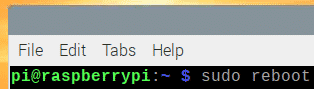 Now, reboot your Raspberry Pi with the following command: