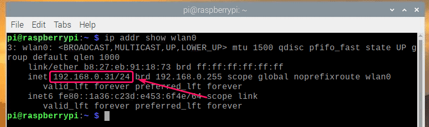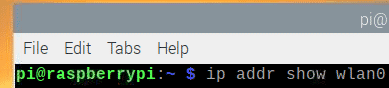 Once your Raspberry Pi boots, check the IP address of the Wi-Fi network interface wlan0 with the following command: