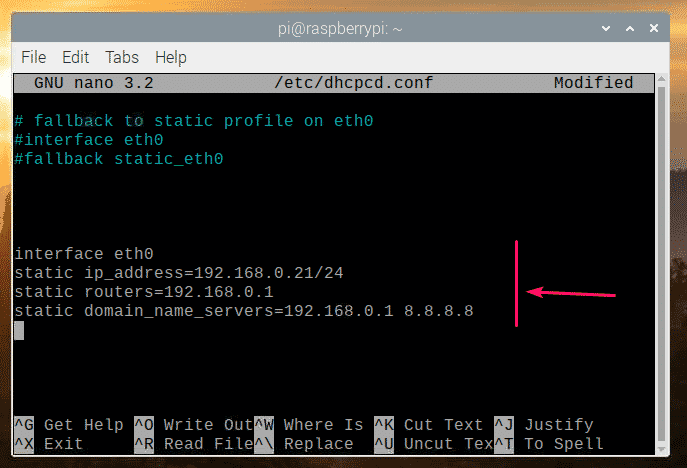 So, this is how you set a static IP address to the ethernet network interface eth0 of your Raspberry Pi running Raspbian operating system.