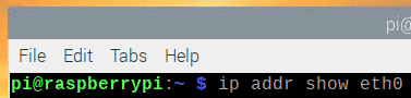 Once your Raspberry Pi boots, check the IP address of the ethernet network interface eth0 with the following command: