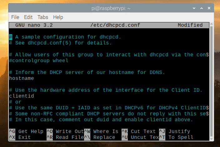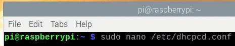 To edit the configuration file /etc/dhcpcd.conf with nano text editor, run the following command: