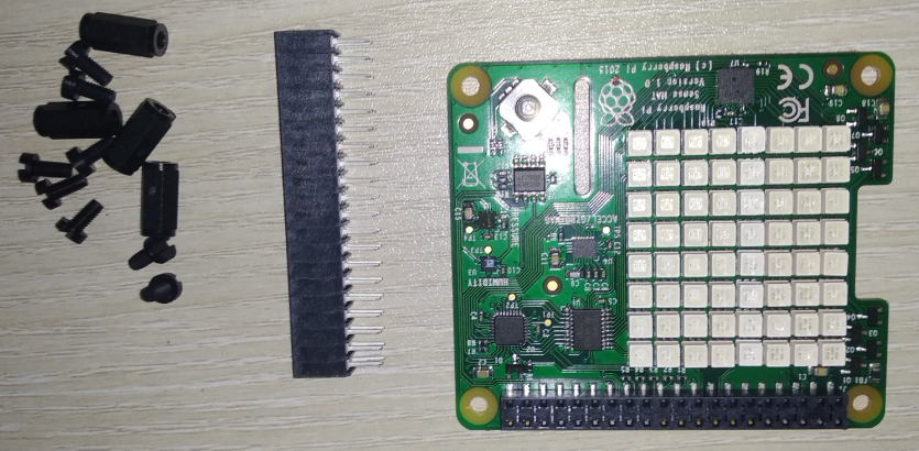 Raspberry Pi Sense Hat kit comes with the Raspberry Pi Sense Hat add-on board, a 40-pin male-to-female header, and some screws and spacers.