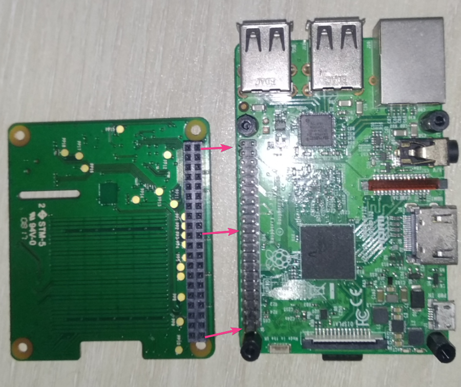 Connect the Raspberry Pi Sense Hat to the 40-pin GPIO male header of the Raspberry Pi, as shown in the images below.