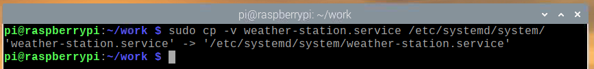Copy the weather-station.service file to the /etc/systemd/system/ directory with the following command: