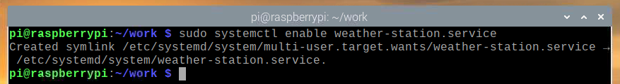 Now that the weather-station service is working, you can add it to the system startup of Raspberry Pi OS with the following command:
