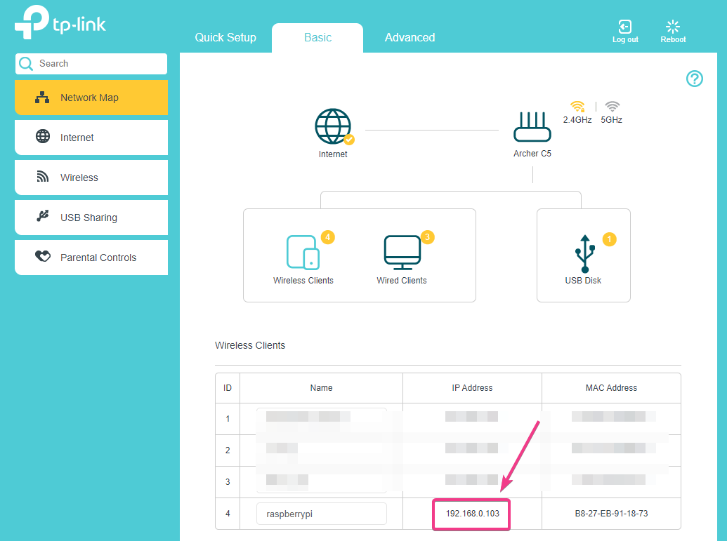To access the weather app from other devices in your home network, you need to know the IP address of your Raspberry Pi. You can find the IP address of your Raspberry Pi 4 from the web management interface of your home router. In our case, the IP address is 192.168.0.103, but this address will be different for you, so make sure to replace this address with yours in all subsequent steps.