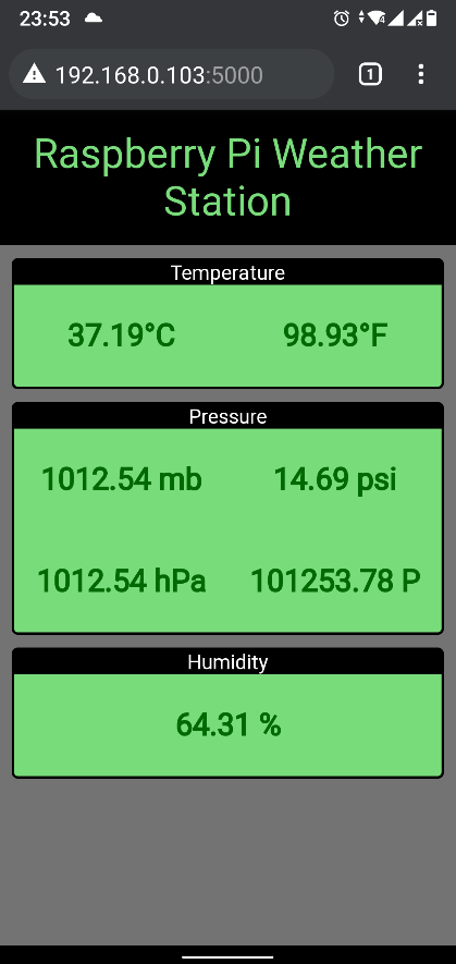 Once you know the IP address of your Raspberry Pi, you can access it from any device in your home network. As shown in the screenshot below, we have accessed the weather app from an Android smartphone.