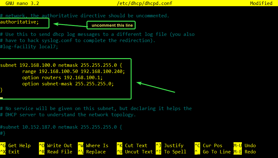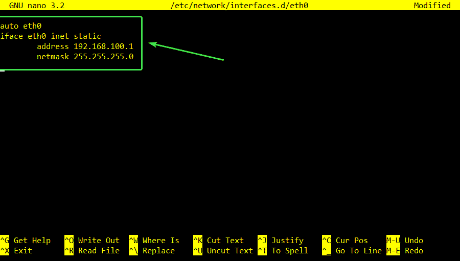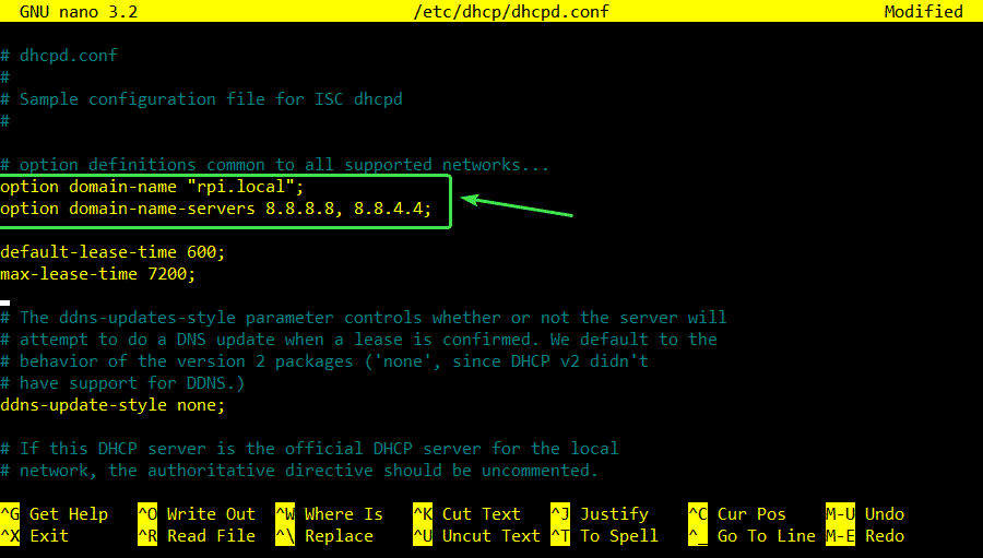 Now, type in the following lines and save the configuration file by pressing <Ctrl> + X followed by Y and <Enter>.