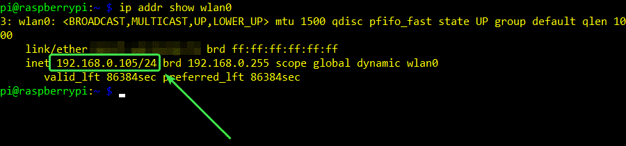Once your Raspberry Pi starts, check the network configuration of wlan0 network interface as follows: