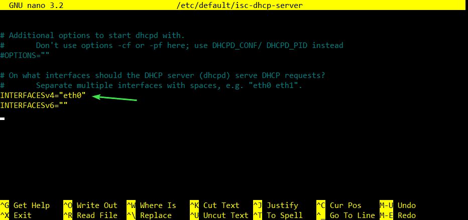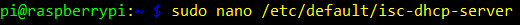 Now, open the /etc/default/isc-dhcp-server configuration file as follows: