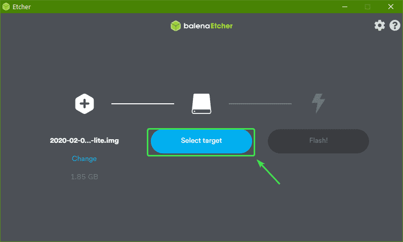 Insert your microSD card into your microSD card reader and plug it in your computer. Then, click on Select target.