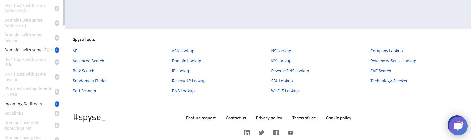 There are many tools associated with Spyse. All of these tools have a specific advantage in reconnaissance of the internet. The tools are mentioned below:
