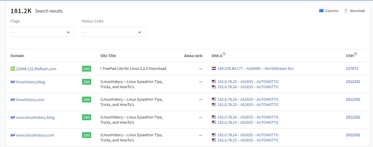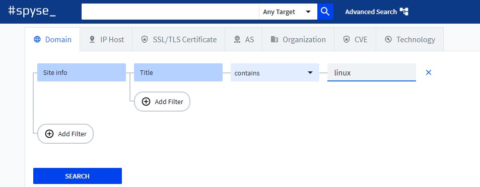 For instance, I have to search the domains that contain ‘linux’ in the title. For that purpose, click on ‘Domain’ and add a filter for title.