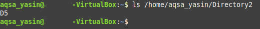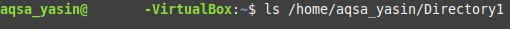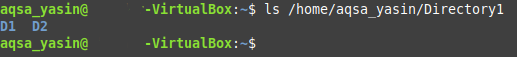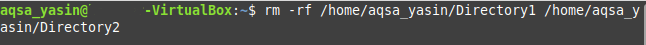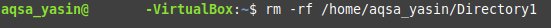 Here, replace “PathOfTheDirectoryToBeDeleted” with the exact path of the directory that you intend to delete. In our case, the directory is /home/aqsa_yasin/Directory1. The “-rf” flag, along with the “rm” command, removes a directory recursively without prompting the user for confirmation.