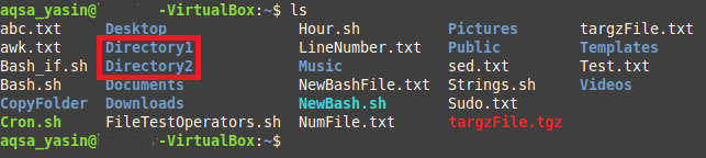 You can see from the output of this command that Directory1 and Directory2 exist in our Home directory, as highlighted in the image below. We performed this step so that you can easily verify the deletion performed in Step 4 of this method.