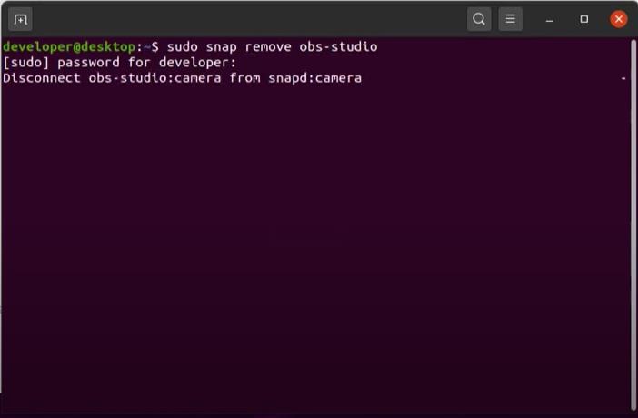 We will now cover the step-by-step procedure of removing a snap package easily, so let’s consider that you have OBS Studio from the system.
