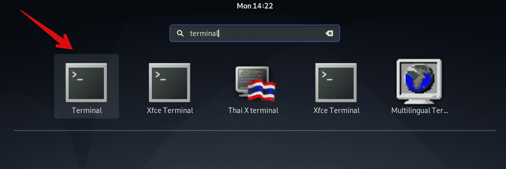 To remove a user using a command in the terminal, you first need to open the terminal. Click on ‘Activities’ and then type the keyword ‘terminal’ in the application search bar. Click on gnome-terminal from the following results.
