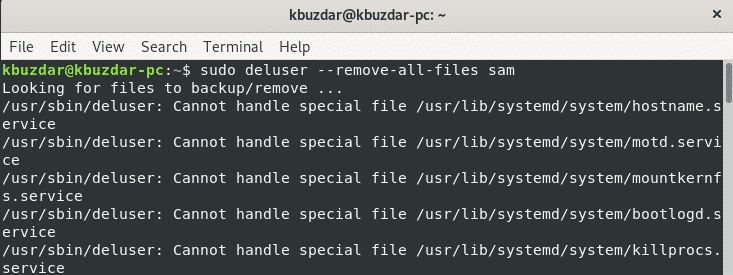 For example, if you want to delete a user named ‘sam’ from your system, then the above command will be converted into the following form: