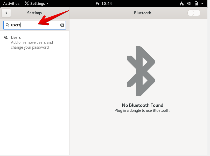 The following window will be displayed on the desktop. Click on the search icon from the left corner of the display window and type the keyword ‘users’ in the search bar.