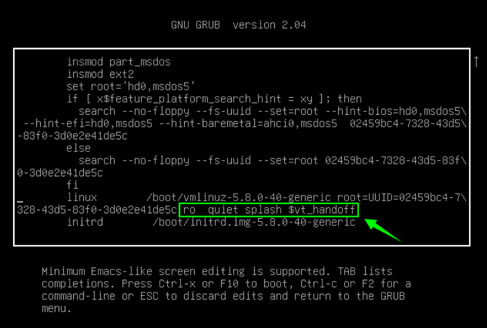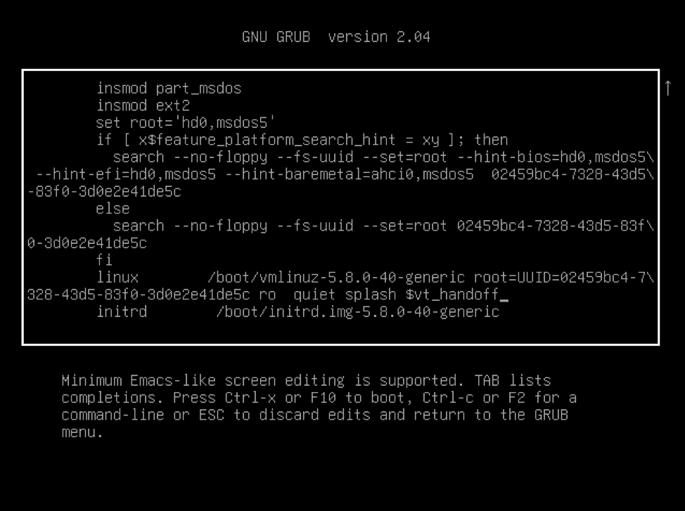 Step 4: Press F10 or Ctrl-x to save the edits and boot