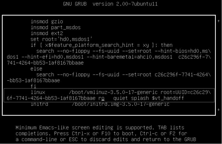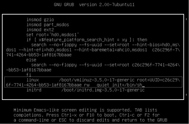 To save the changes and to boot, press ctrl-x. You are now booting with both read and write access into a Linux kernel, here you can use the bash shell instead of GUI. In other words, a passwordless root shell will boot into your system.